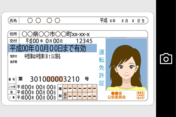 - 運転免許証: ご登録の氏名と一致する有効期限内のもの